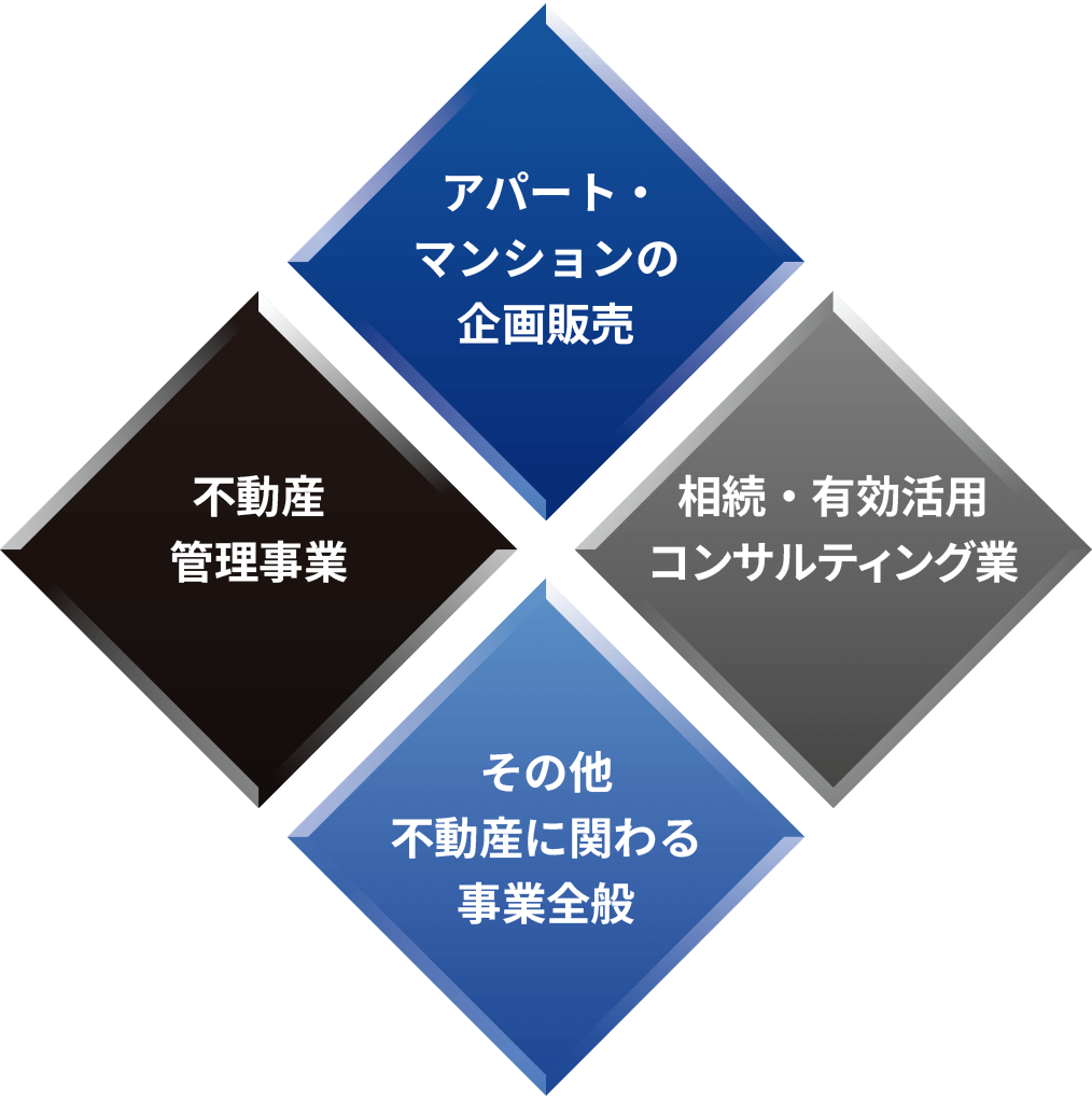 | 業務内容 | 不動産の売買・賃貸借管理およびこれらの仲介斡旋・紹介業 不動産の所有並びに賃貸業 不動産に関する企画・立案およびコンサルティング業 保険代理事業 |